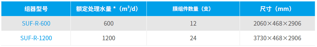 注:(1)* 推薦工作溫度范圍內(nèi)的處理水量;