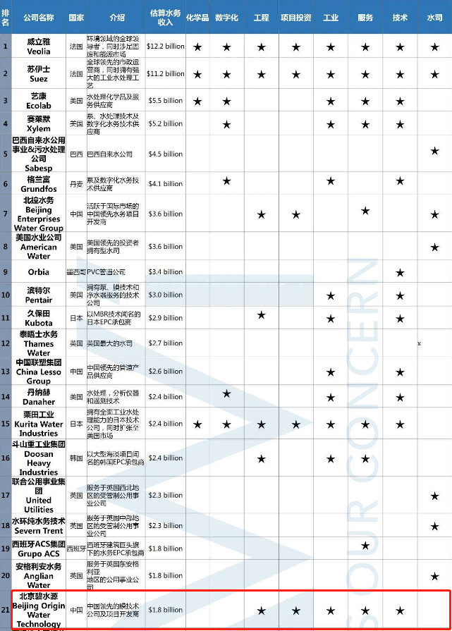 在這份“全球水務(wù)領(lǐng)域營收TOP40公司排名”榜單中,法國最大的私營水務(wù)運營商、美國最大的工程技術(shù)公司、巴西最大的私營水務(wù)特許經(jīng)營商和英國最大的受監(jiān)管類水司均位列其中,碧水源在國際水務(wù)市場與國際水務(wù)巨頭進一步拉近實力差距,影響力顯著提升。